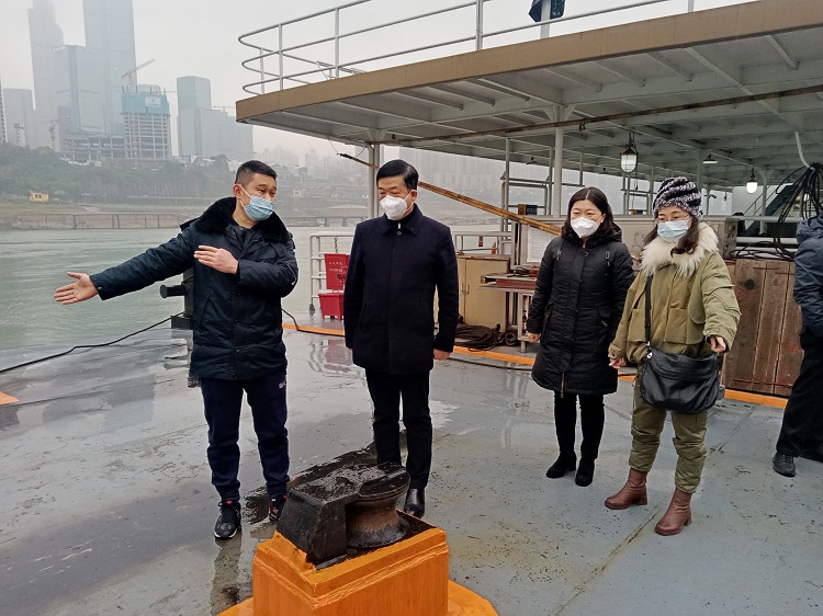 在弹子石码头,晓军书记与职工亲切交谈,详细询问职工家庭生活情况,并现场了解了日常排迭船作业、设备维保等工作情况,对客轮公司职工恪尽职守,为企业安全生产工作付出的努力表示肯定。晓军书记强调春节将至,此次春节是进入疫情防控新阶段后的第一个春节,客流可能出现较大增长,大家一定要始终保持昂扬的精神状态,切实做好春运春节期间安全生产、疫情防控与服务保障工作。同时也勉励大家继续努力,齐心协力为企业高质量发展贡献力量。