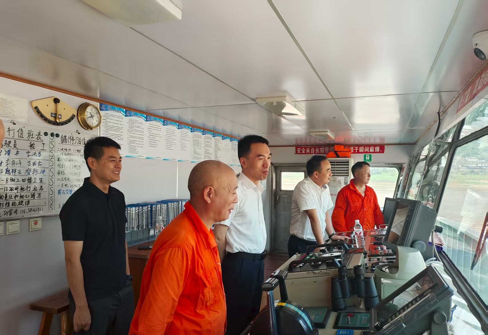 陈利一行在船舶作业现场,实地查看码头装卸作业、船舶运行维护及安全设施配备情况。陈利强调:一要抓好新建船舶建设进度,加快推进明年新建船舶前期准备工作。二要抓好当前生产经营工作。在深化既有客户关系维护的基础上,积极开拓新市场与新客户资源;密切关注三峡水运新通道建设动态,认真研判,科学制定应对预案。三要抓好全流程成本管控。持续优化货源组织,强化生产调度,多措并举提高船舶运营效率。四要抓好资金风险防控。严格执行客户资信评估与准入机制,加强应收账款动态监控与催收力度,切实防范资金风险。五要抓好汛期及高温天气安全管理。全面排查安全隐患,严格落实防暑降温措施,强化防火巡查、消防设施维护及应急演练,杜绝各类安全事故发生。