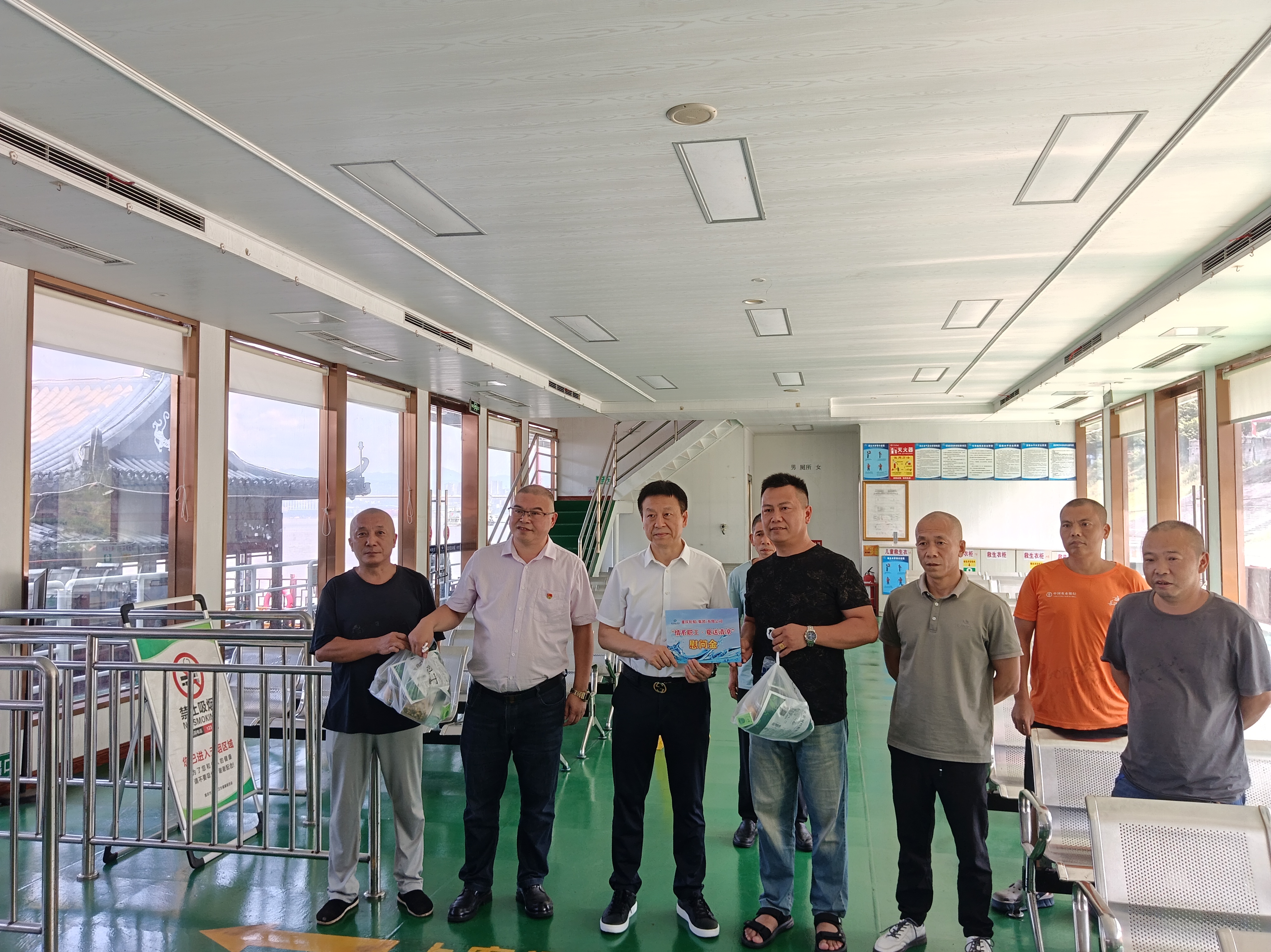 7月31日,重轮集团党委书记、董事长苗浩野率集团党群部、办公室、财务部、客运部负责人一行到交运游轮公司进行“夏送清凉”高温慰问一线职工。