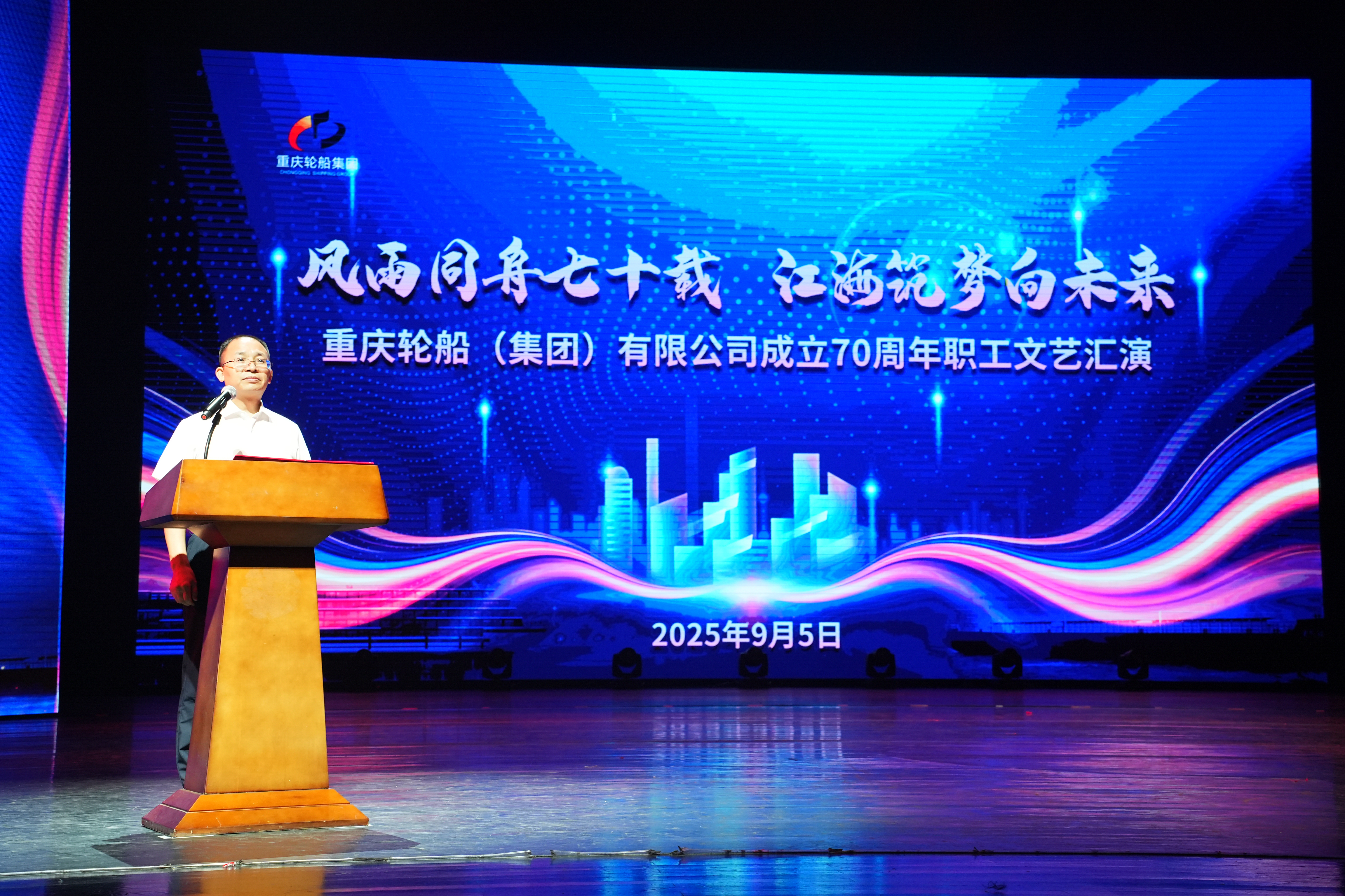 9月5日下午,重轮公司成功举办“风雨同舟七十载,江海筑梦向未来”公司成立70周年职工文艺汇演。重庆物流集团党委副书记、工会主席向云林出席并致辞,渝中区、涪陵区政府,市交委,市海事局等各级管理部门领导,客户和合作单位领导,重轮公司领导班子成员、部分退休领导、分子公司领导班子成员及职工,共计450余人共同观看文艺演出。