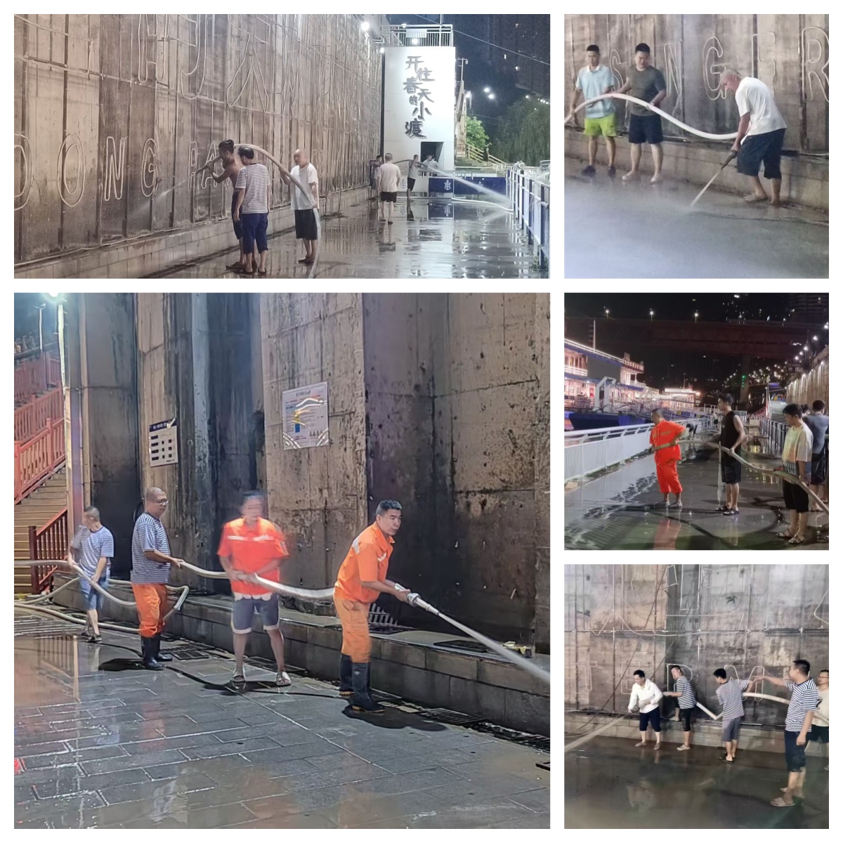 近日,受上游强降雨和库区低水位双重影响,嘉陵江重庆段水位骤涨。客轮公司于9月18日发布“黄色”预警信息,启动防洪应急响应。为应对今年最大洪峰,公司领导带队彻夜巡查各码头港区,提前研判汛情风险,安排管理人员24小时在岗值守,确保安全度汛。9月20日12时,寸滩水位达177.77米,创入汛以来新高,最大洪峰顺利过境。洪峰退去后,为尽快恢复港区经营秩序,9月21日凌晨5时,公司迅速组织行趸船班组及管理人员70余人,在1小时内完成了洪崖洞港区清淤及照明标识恢复工作。当日,受影响航线顺利复航,港区经营秩序井然。