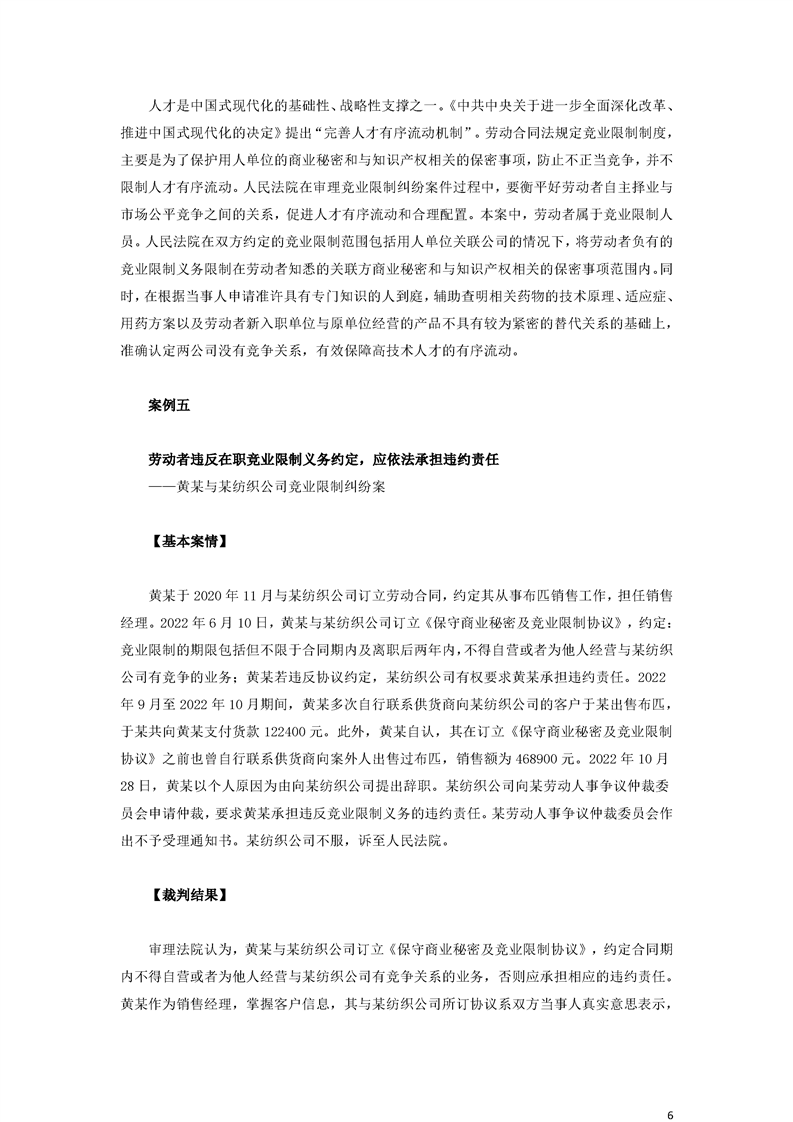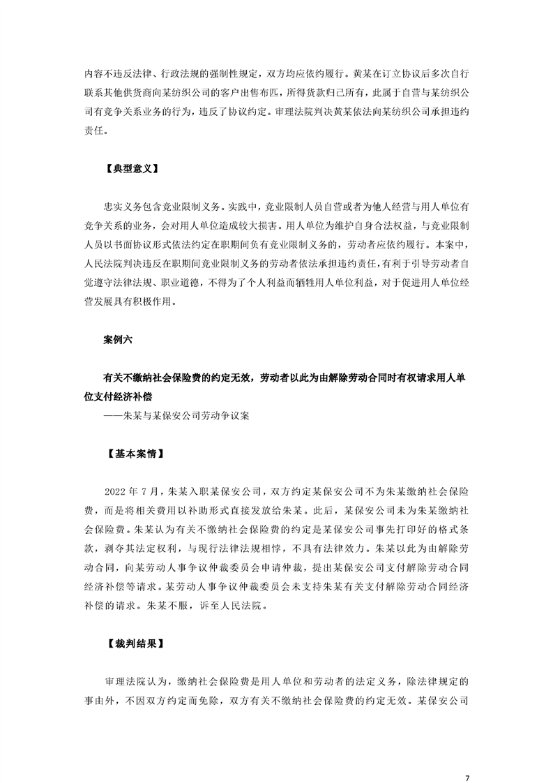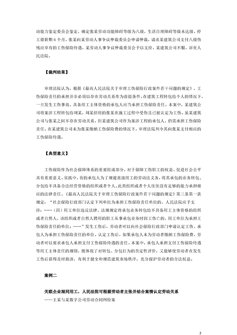最高人民法院关于审理劳动争议案件典型案例