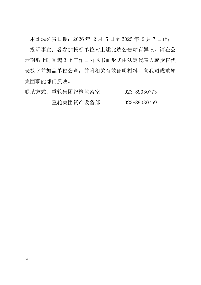 重庆中江船业有限公司关于130m集散货船(D型)轮机安装劳务工程竞争性比选中标公告