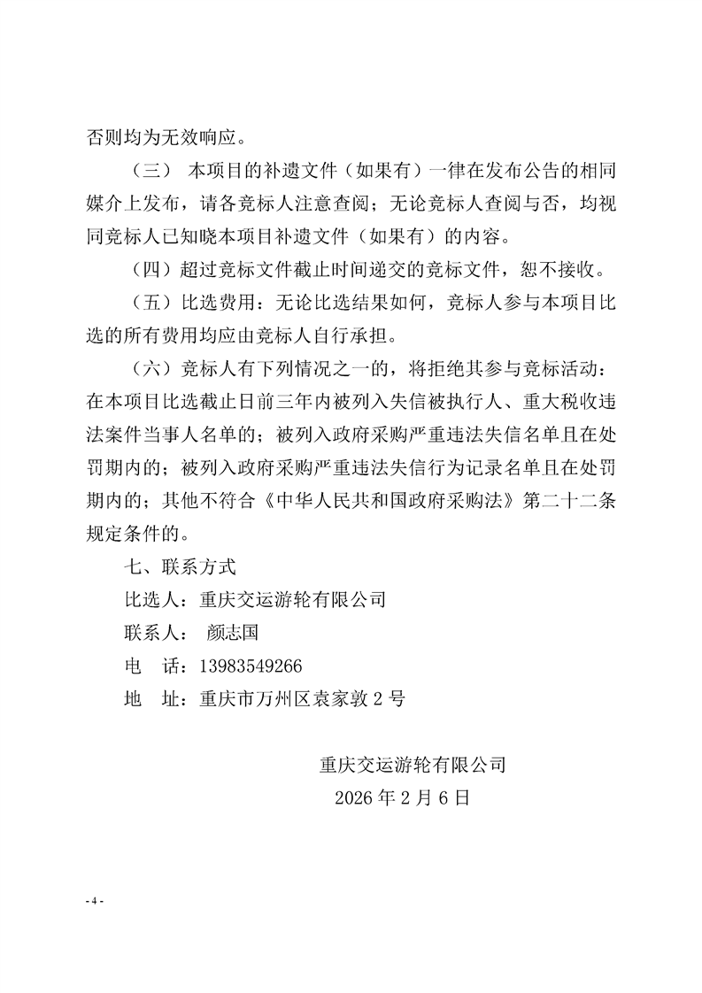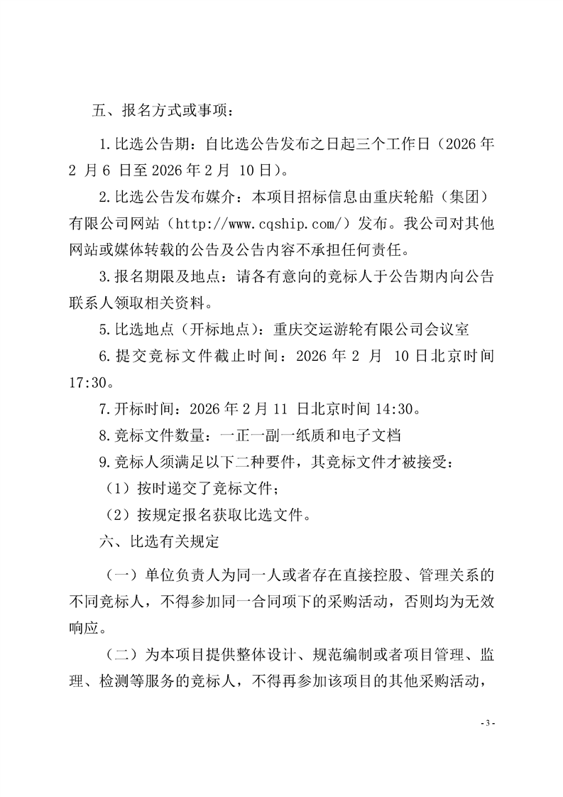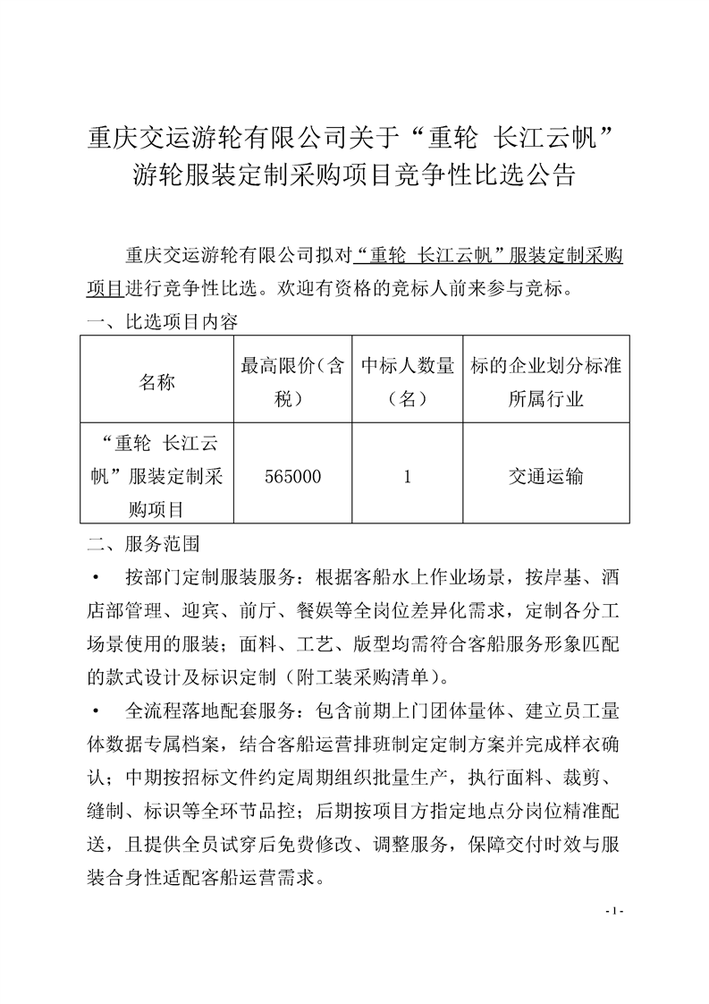 重庆交运游轮有限公司“重轮 长江云帆”游轮服装定制采购项目竞争性比选公告