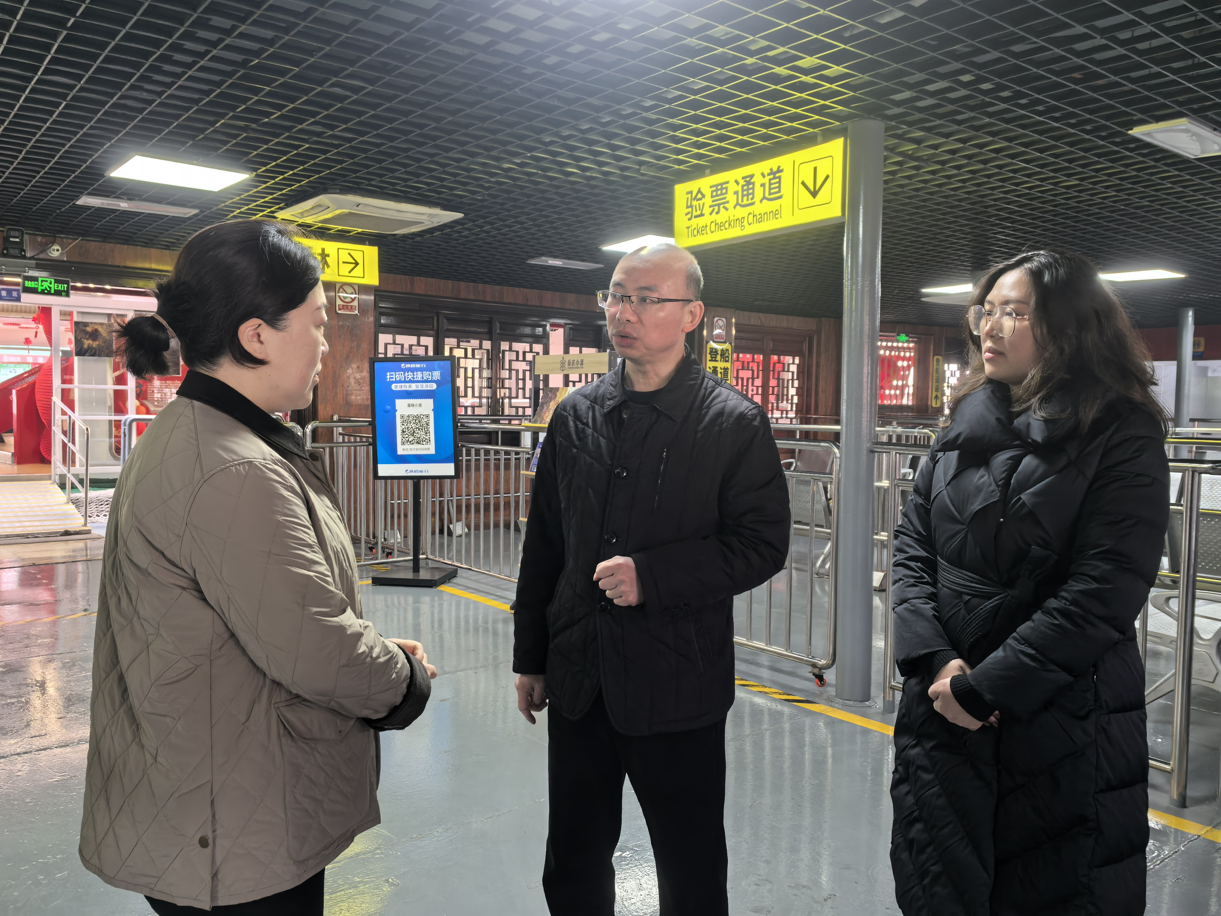 刘良平首先听取了客轮公司关于春运安全准备及航班运行安排的汇报,实地查看码头游客动线布局,并登上“交运轮渡06”,详细了解船舶运行状况,翻阅《小读》文创刊物。针对春运期间安全管控、市场秩序和服务提升等重点环节,刘良平提出五点要求:一是优化现场组织,科学划分码头进出通道,有效消除客流对冲风险,筑牢登船安全防线;二是强化提级管控,严格执行包保值班制度,确保应急响应迅速、处置到位;三是规范市场秩序,加强码头及周边区域现场管理水平,营造安全、有序、便捷的出行环境;四是提升服务品质,从旅客需求出发,细化购票、引导、候船等环节服务举措,持续优化乘船体验;五是围绕“重庆小渡”品牌,深化交旅融合,强化IP打造与宣传推广,全力建设水上精品航线。
