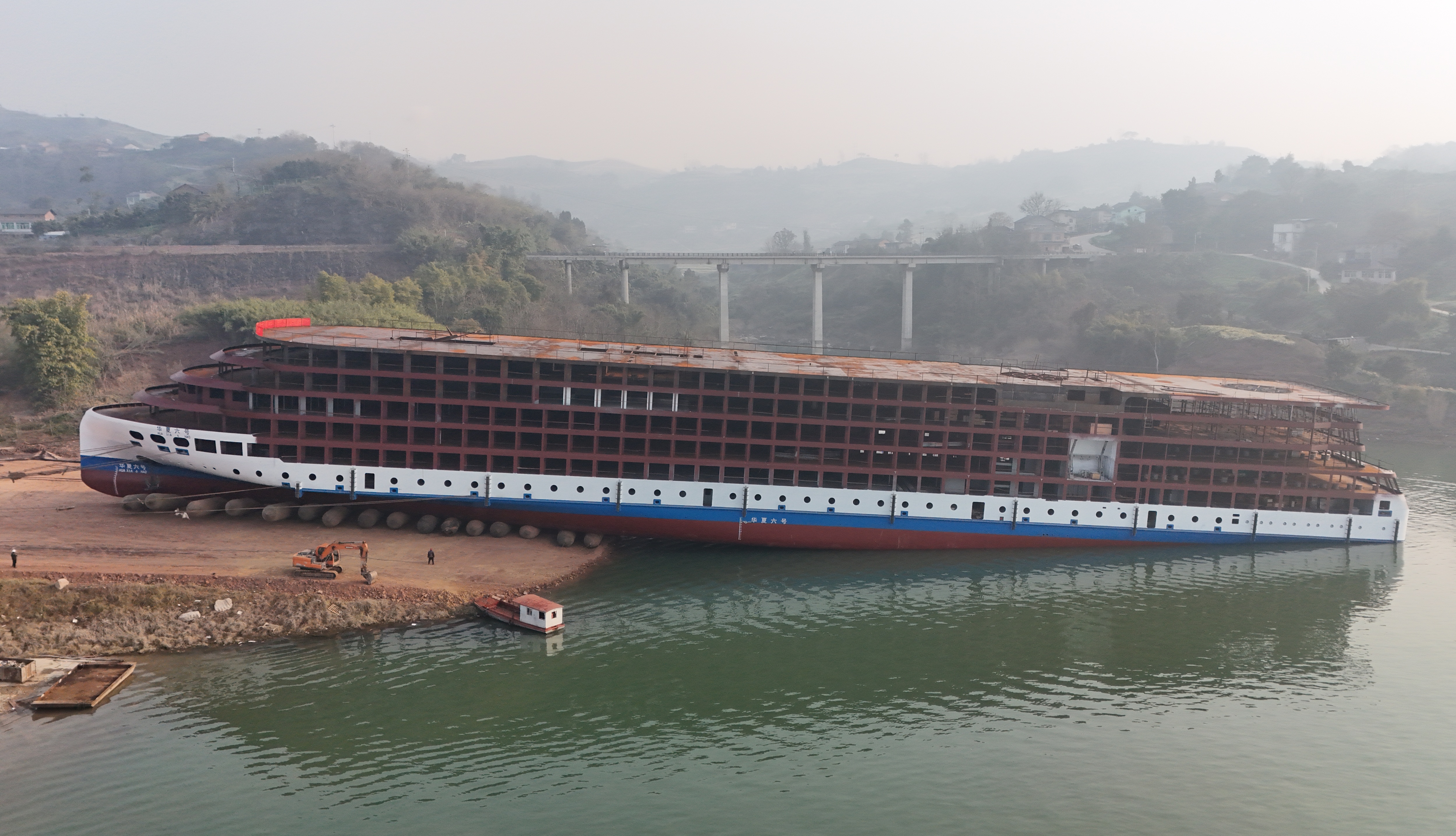 2月11日11:38分,随着礼炮声响,中江船业公司为大美长江游轮公司建造的“华夏6号”客船顺利吉水。