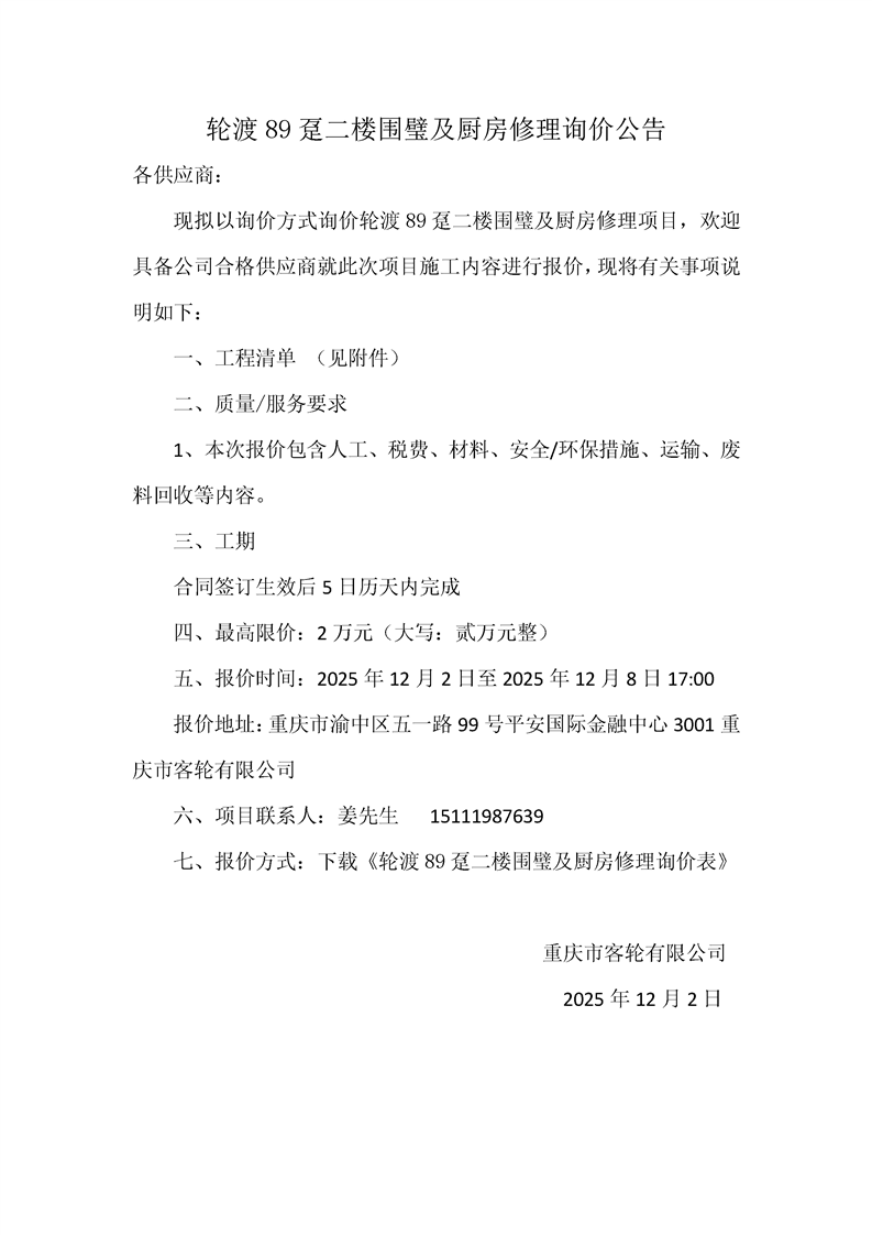 轮渡89趸二楼围璧及厨房修理询价表.xls