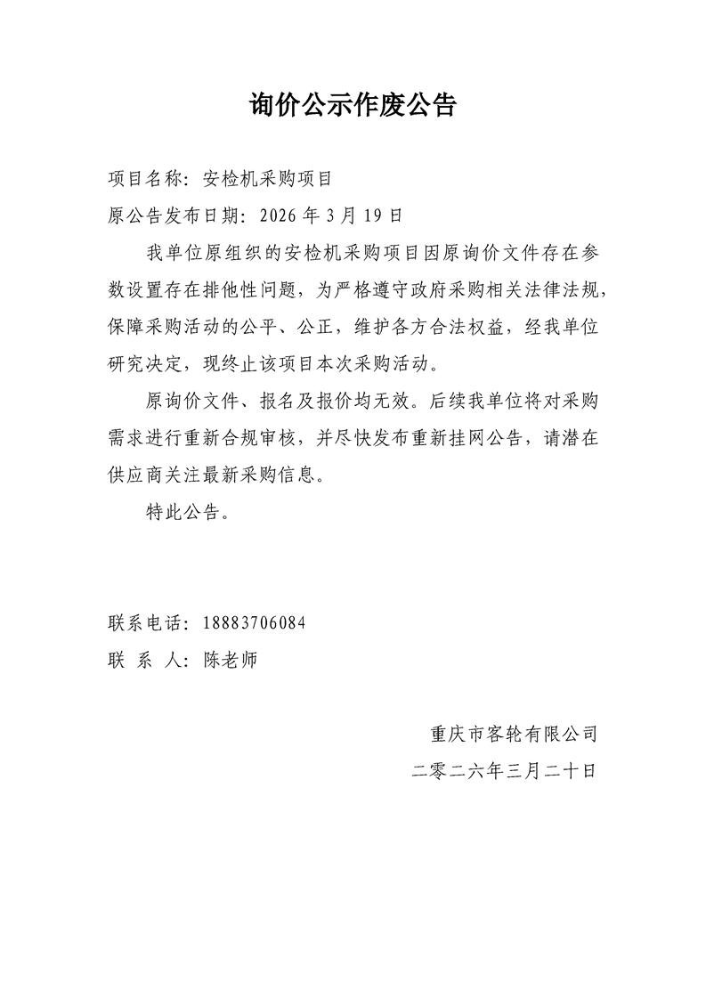 安检机采购项目询价公示作废公告