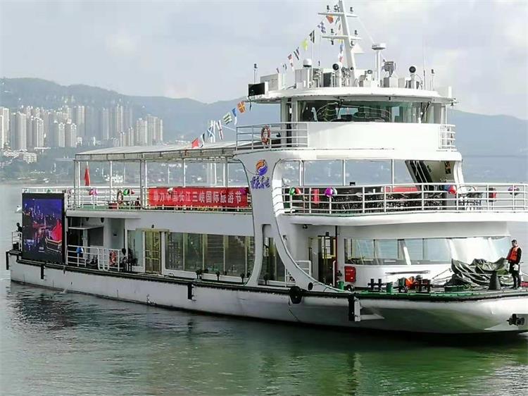 为助力第九届中国长江三峡国际旅游节,提升万州旅游品牌知名度,重轮客轮公司受万州区政府邀请,共同打造交通旅游航线——“万州至巫山水上巴士观光航线”,近日首航试运行取得圆满成功,万州平湖夜游深受游客欢迎,场面火爆。