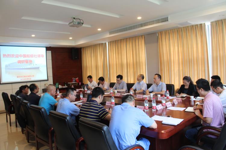 2019年9月5日下午,CCS总部钟小金副总裁一行到中江船业进行调研。重轮集团副总经理贺琅、CCS重庆分社总经理顾思远、副总经理唐建、CCS涪陵办事处主任涂建川、副主任许建华、冠达公司总经理李维德、中江船业公司支部书记刘洪友等相关领导参加了会议。