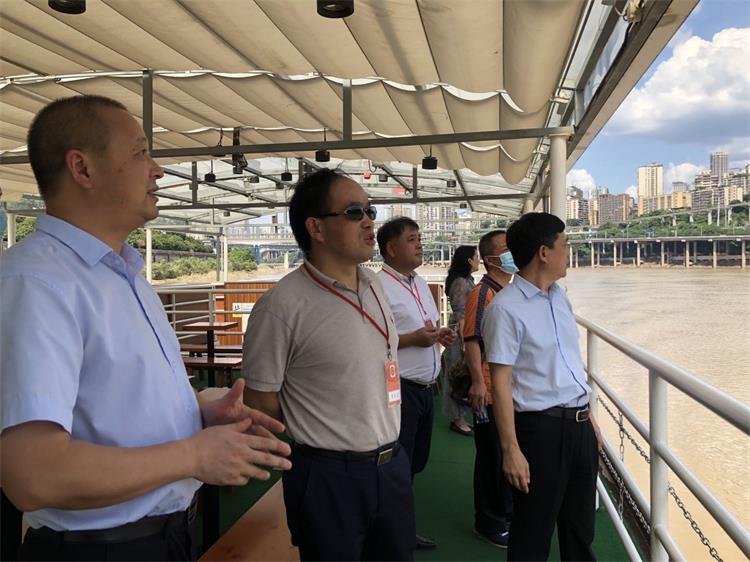 8月6日,渝中区政协主席陈大奎、副主席赵元政、渝中区交通局局长冉涛等一行乘坐客轮公司“交运轮渡06”轮调研水上观光航线,客轮公司副总经理谭明贵等陪同参与调研。