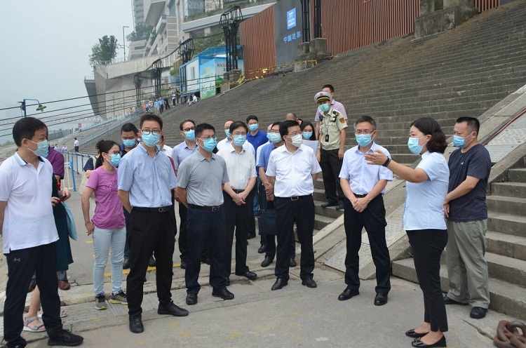 8月8日上午,国务院第十七督导组国家卫生健康委监督局赵延配局长一行在渝中区政府左永祥区长等领导陪同下,到客轮公司朝天门5码头检查客运港口码头新冠疫情防控工作,交运集团总经理曾勇、重轮公司总经理苗浩野、重轮公司副总经理谭余、客轮公司总经理程霞接受检查。