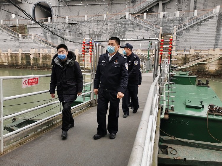 1月28日,长江航运公安局泸州分局党委书记、局长刘开林一行到重轮集团四川分公司和宜宾三江游船公司检查治安消防工作,听取涉水企业意见建议。