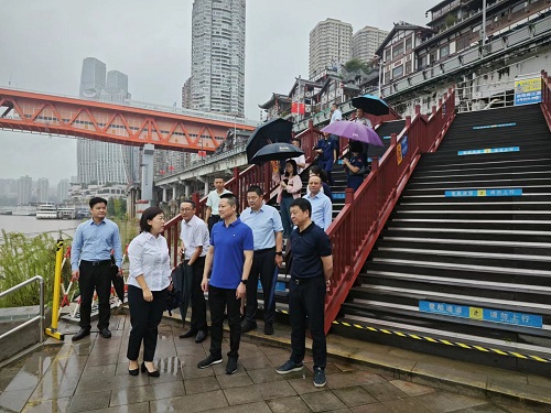 9月25日上午,渝中区委副书记、区长谢东到客轮公司洪崖洞码头督查指导中秋、国庆节工作,重轮集团党委书记、董事长苗浩野陪同检查。