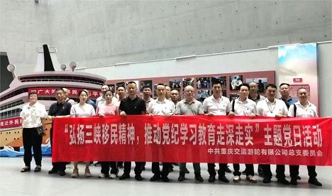 近日,交运游轮公司党总支组织全体党员前往重庆市廉洁文化示范基地三峡移民纪念馆,开展沉浸式教育和党性锻炼。在纪念馆前,全体党员面对党旗,重温入党誓词;在三峡移民陈列厅、万州历史文化陈列厅以及盐井沟化石陈列厅,大家深刻感受了三峡百万移民“舍小家、顾大家、为国家”的家国情怀和全国人民情系三峡、守望相助的大爱无疆,也体悟到百万移民讲政治、顾大局、识大体的政治品格。