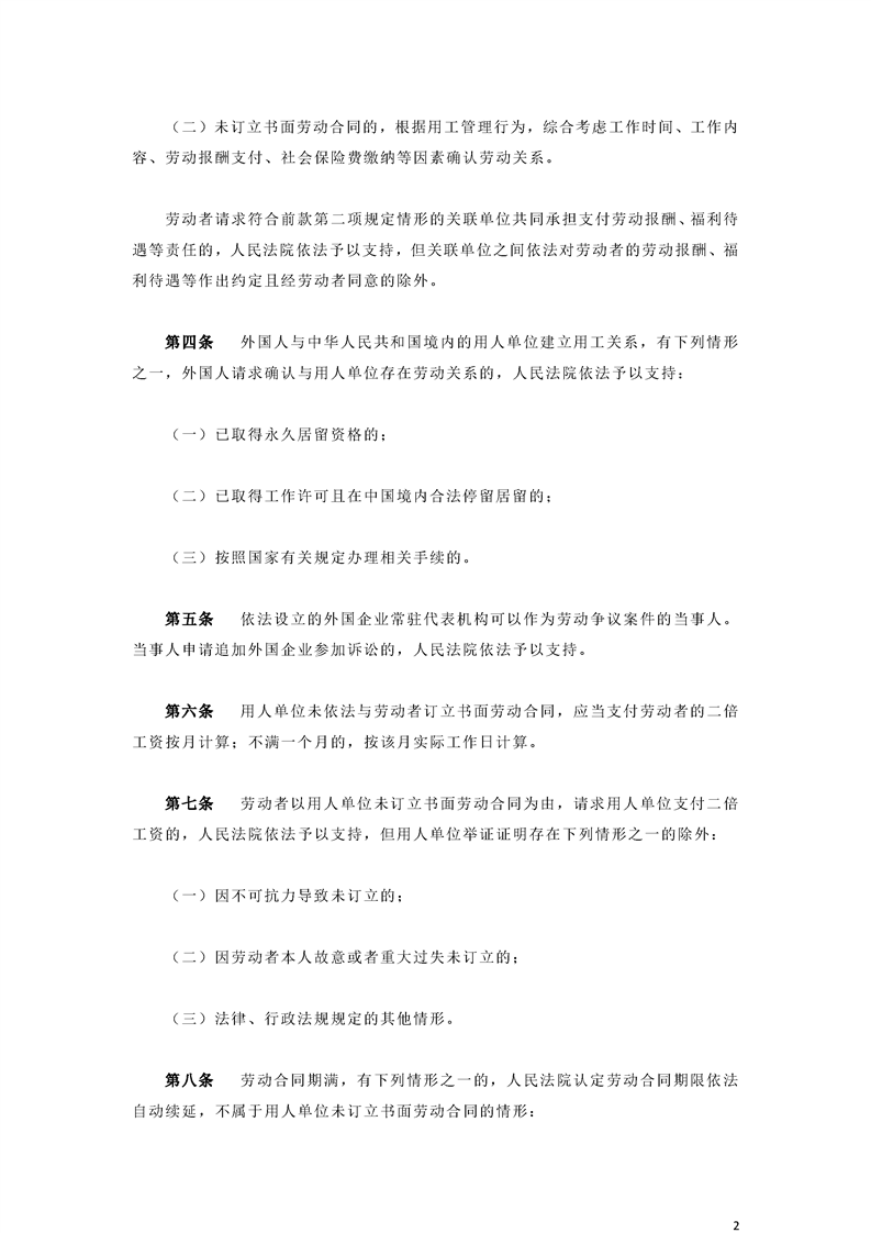 最高人民法院关于审理劳动争议案件适用法律问题的解释二