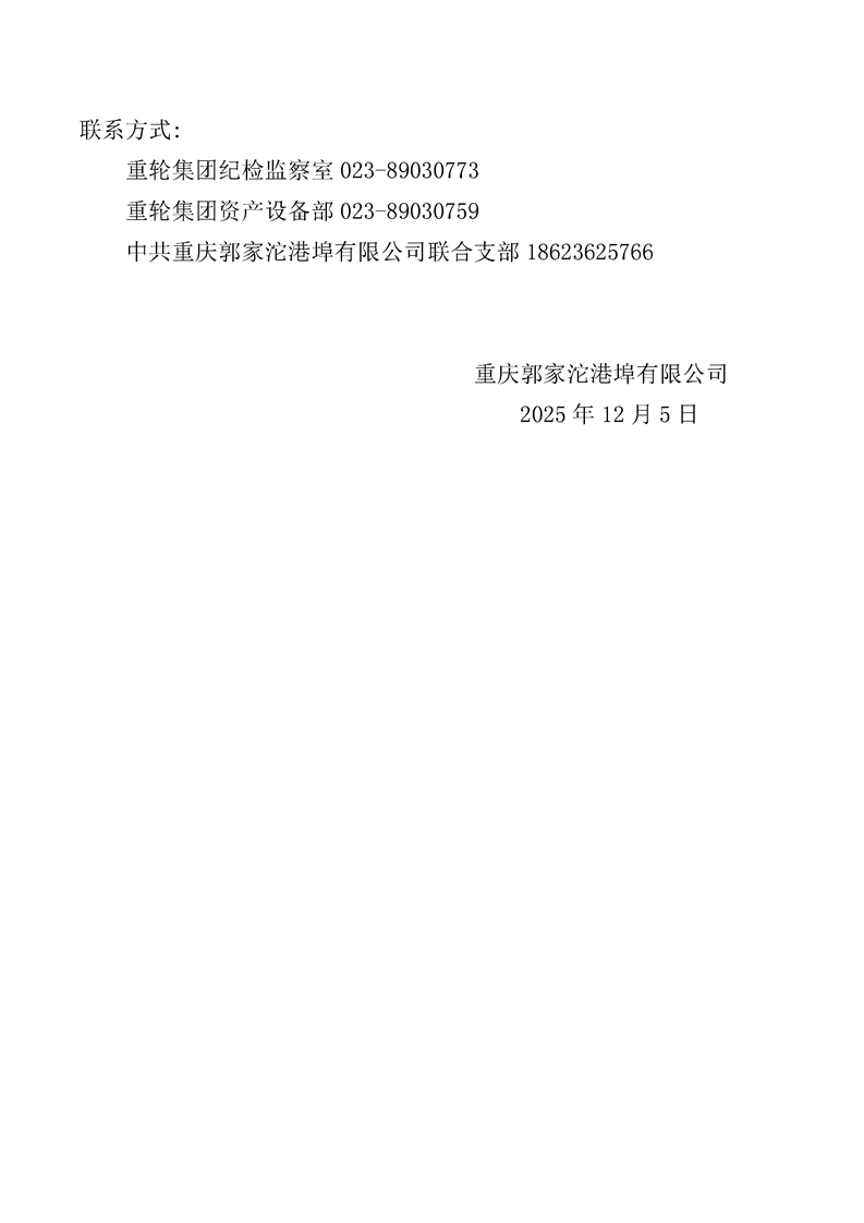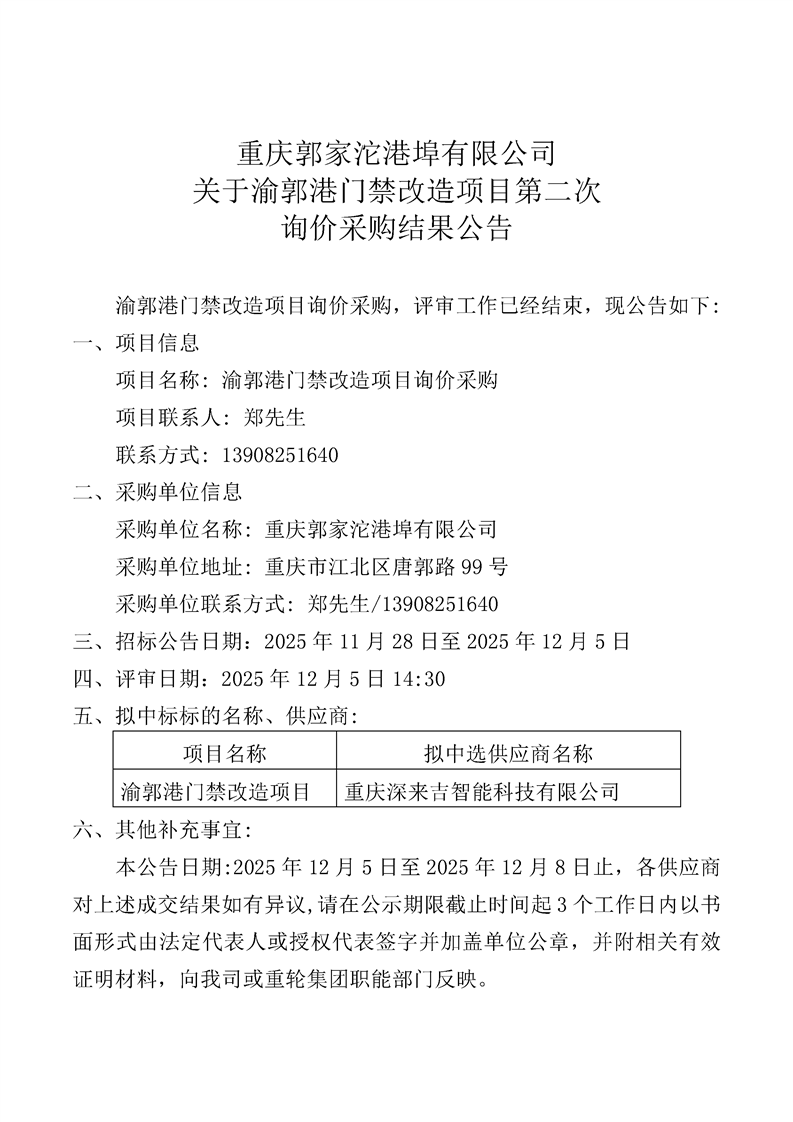重庆郭家沱港埠有限公司关于渝郭港门禁改造项目第二次询价采购结果公告