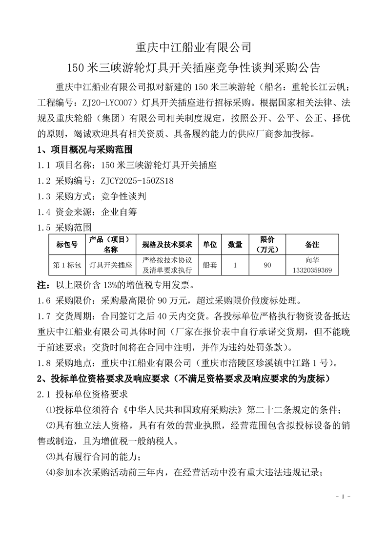 附件一至附件六 150米三峡游轮灯具开关插座报价单等.docx
